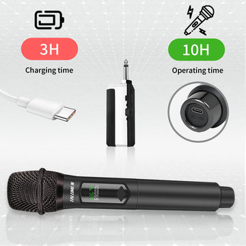 Adopting an innovative chip makes the microphone's signal have 160ft operating range (line of sight) to freely move around during performances.Lower latency, tamper-proof, and a more stable signal without worrying that the sound will be cut off during use. Suitable forindoor and outdoor events such as family karaoke, church, weddings, conferences, speeches and small stage performances.