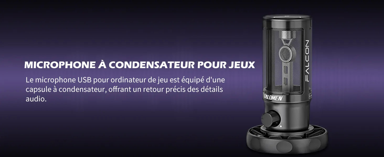 Talomen Falcon est un microphone à condensateur cardioïde qui capte avec précision le son devant vous et réduit le bruit sur les côtés et à l'arrière. Il amplifie efficacement votre voix et réduit le bruit ambiant lorsque vous jouez ou diffusez. Les microphones USB Talomen sont le cadeau idéal pour les joueurs et les YouTubeurs.