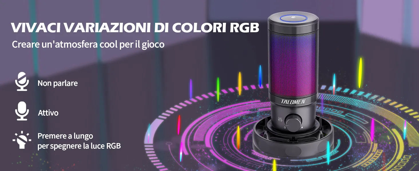 Il gradiente automatico RGB bicolore rende il tuo microfono la ciliegina sulla torta. Con effetti di luce soffusi e coordinati, il tuo video di gioco o la trasmissione in diretta saranno più accattivanti. Fai risaltare il tuo canale dalla classifica. Se sei solo un giocatore, il ricco abbinamento RGB con gli accessori del tuo computer con colori fluidi può soddisfare le esigenze di un'atmosfera di gioco più intensa.
