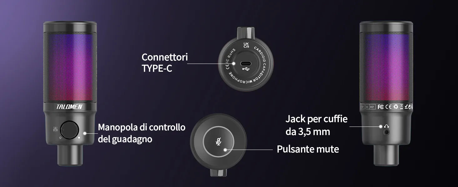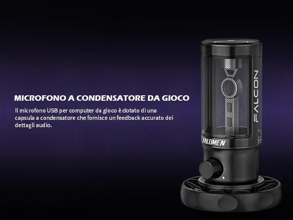 Talomen Falcon Stand è un microfono a condensatore cardioide che cattura con precisione il suono di fronte a te e riduce il rumore dai lati e dal retro. Amplifica efficacemente la tua voce e riduce il rumore ambientale quando giochi o fai streaming. I microfoni USB Talomen sono il regalo perfetto per giocatori e YouTuber.