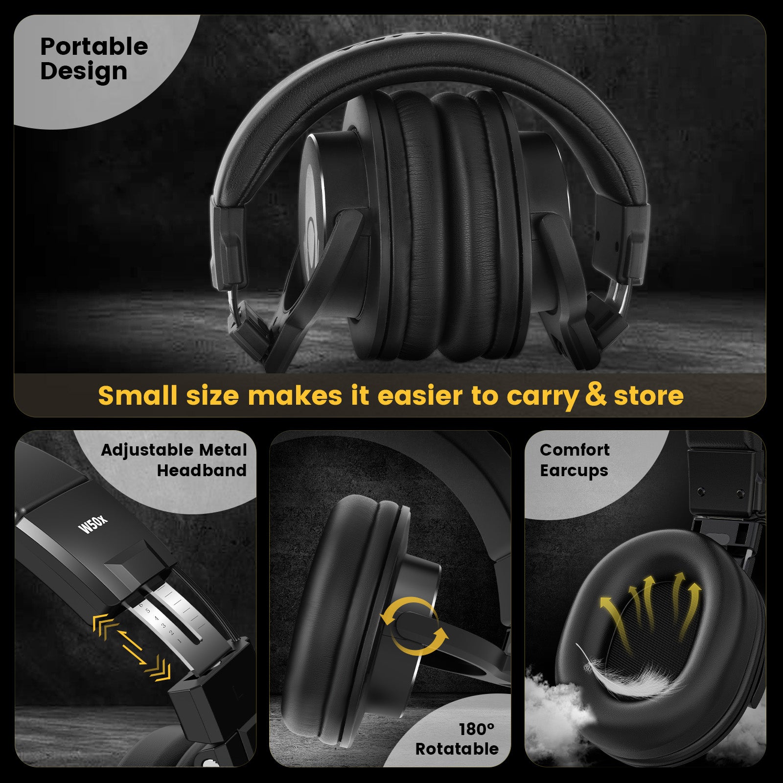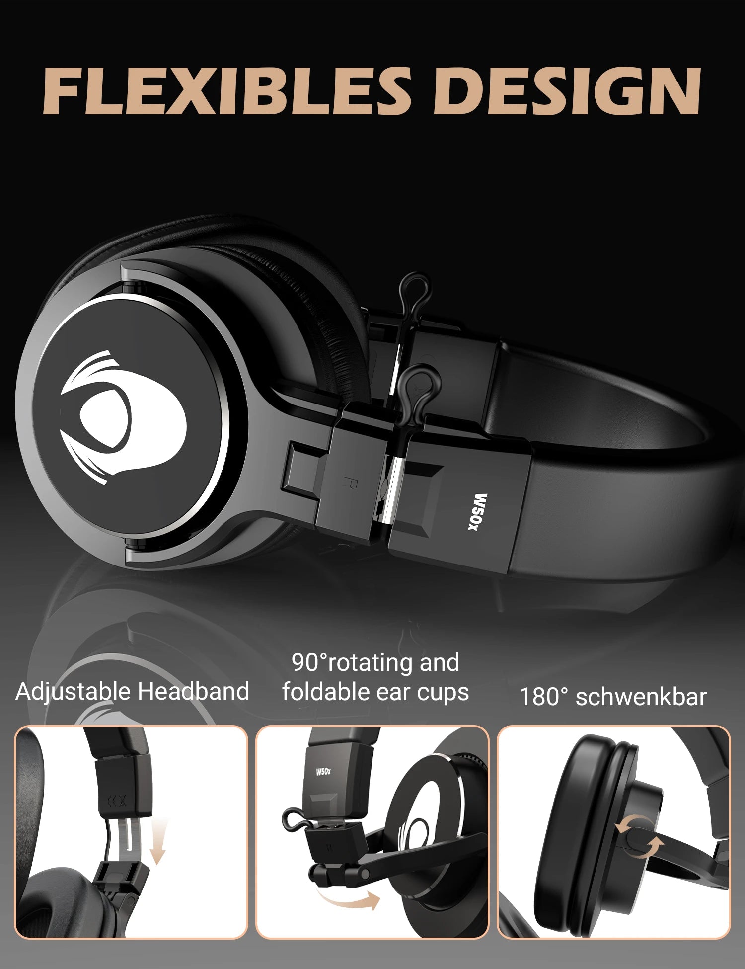 The flexible design of the W50x headphones not only allows for portable storage, but also meets the needs of single-ear monitoring. In addition, no matter what size head circumference, the W50x headphones can be adjusted and adapted.