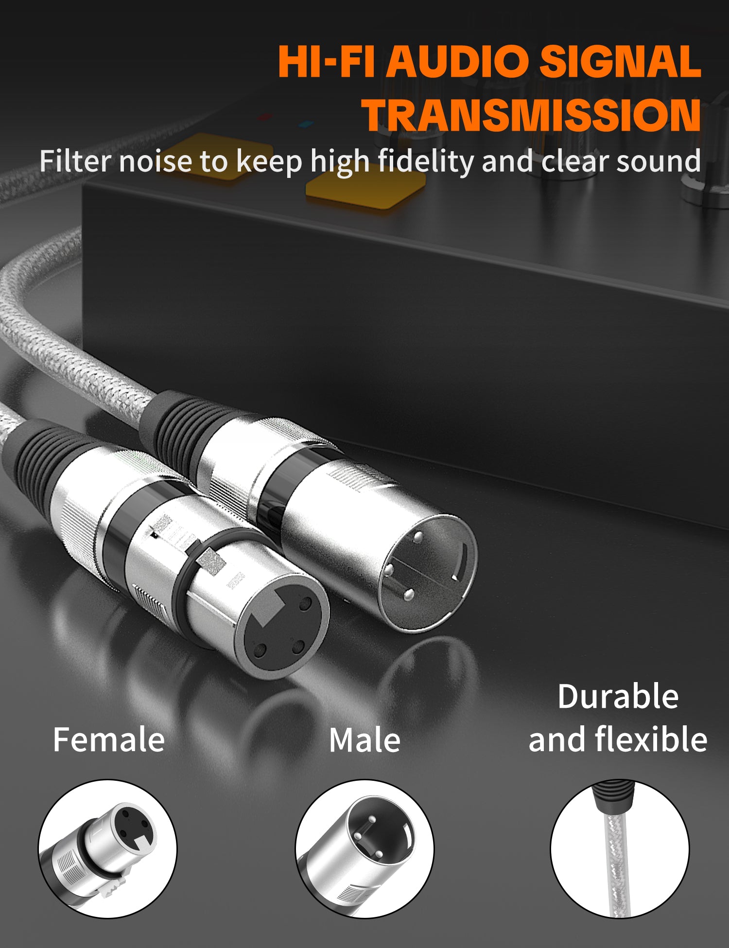 Male to Female Balanced Mic Cord with Oxygen-Free Copper 3-Pin XLR Connectors for Audio Mixer Studio Monitor PA System Microphone Podcast Recording